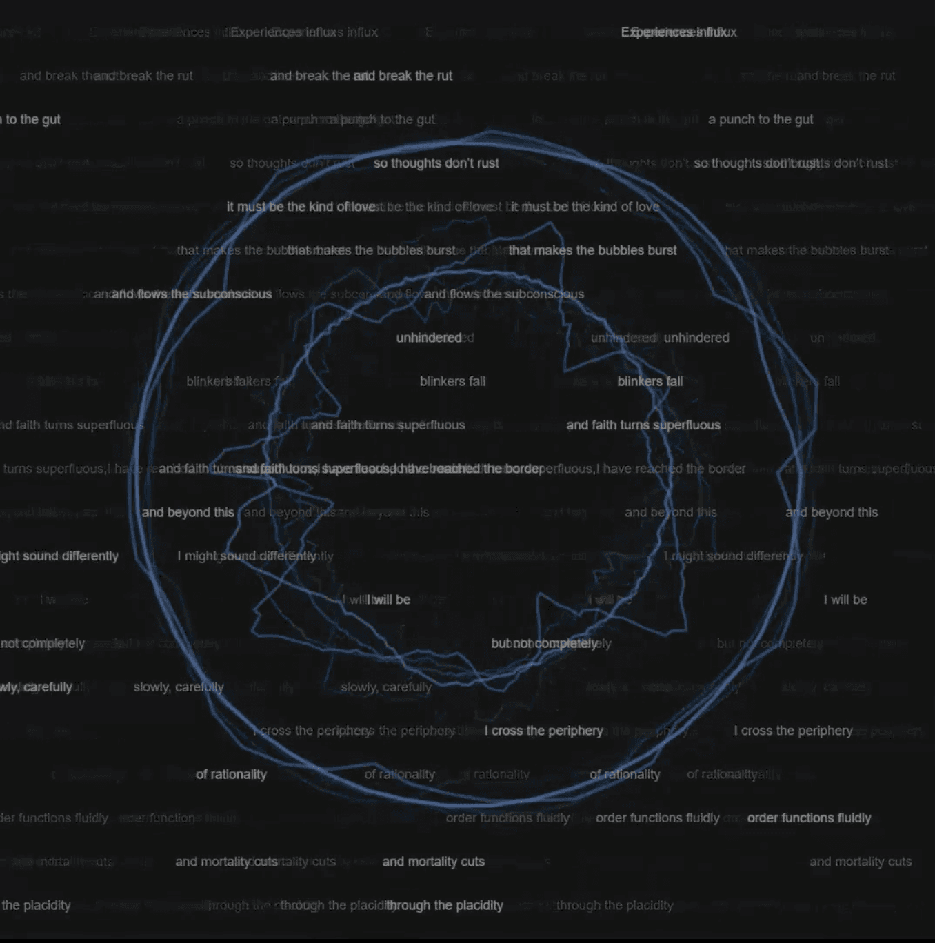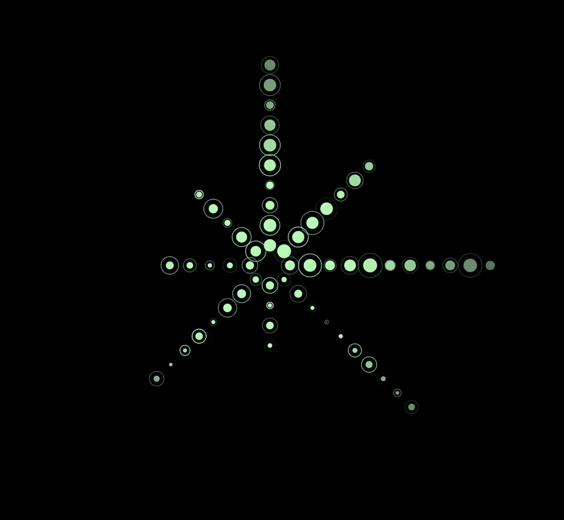 A collection of still images that are generated from an animation coded with p5.js, that depicts a portal to my creative galaxy.