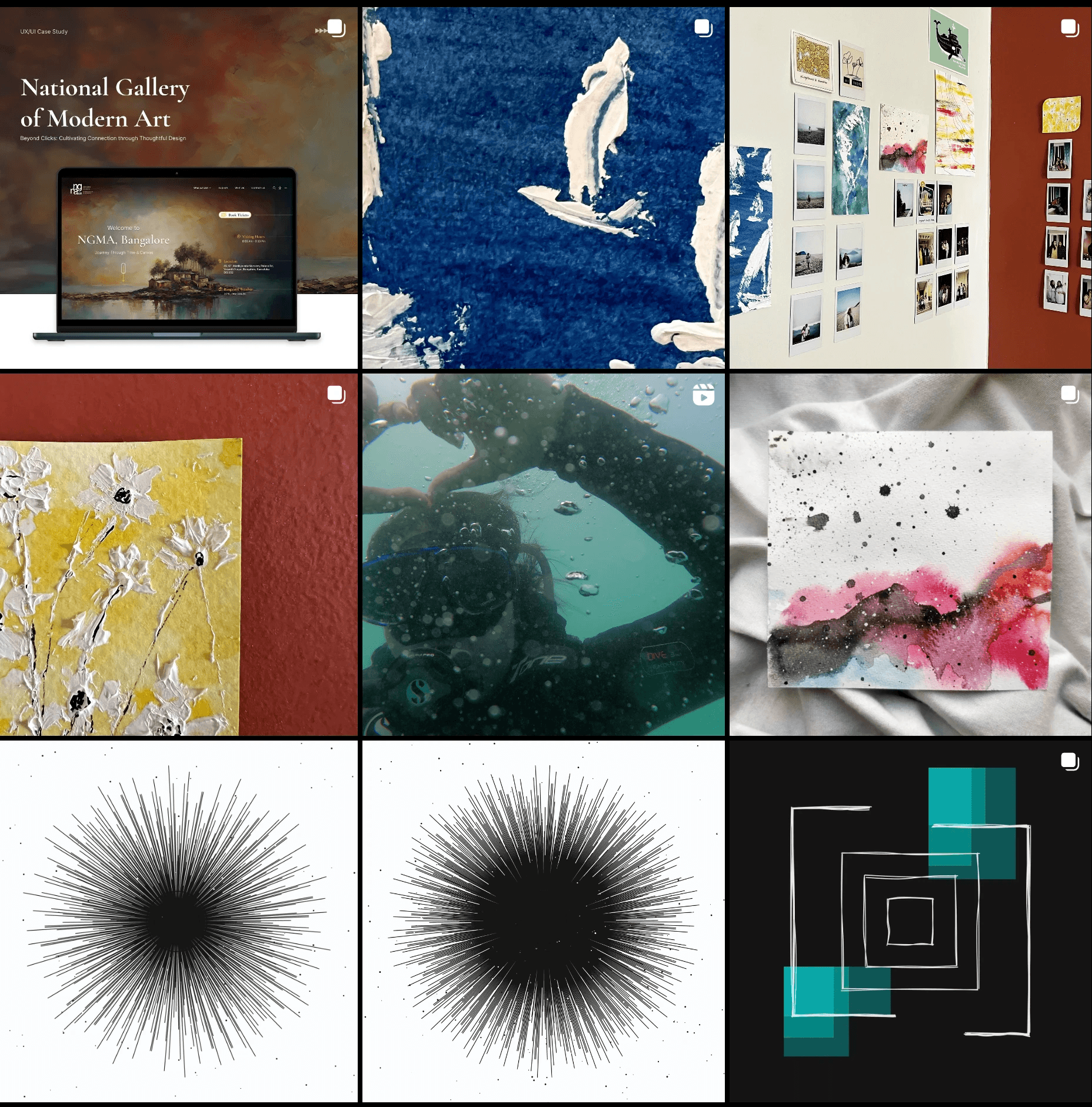 Here are some of the experiments. I work with multiple mediums and try to share with the community on Instagram. There are projects on creative coding, Artworks, vacation adventures. Have a look at them here.